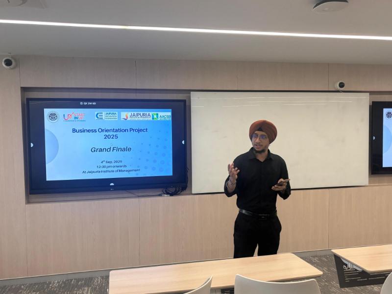 On September 4, 2025, Jaipuria Incubation Foundation organized the Final Round of the Business Orientation Project (BOP) at Jaipuria Institute of Management, Lucknow. The event provided PGDM students a platform to pitch their business ideas, encouraging early-stage entrepreneurial thinking and experiential learning. The top seven participants presented before an external jury, with three winners shortlisted based on innovation, feasibility, and presentation quality.